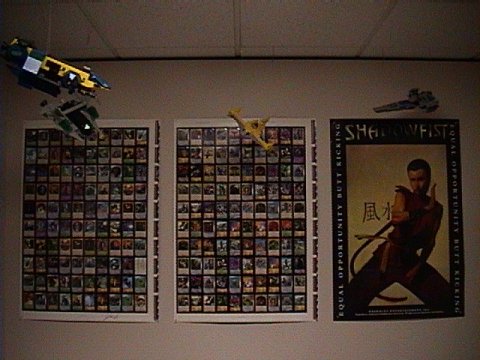 ![]() On a related note, I'm always in the market to expand the Wall. If you know where I can find Limited, Standard, or Netherworld sheets, please let me know. I have plenty of trade stock and FP sheets, and I'd be willing to spend cash if that's what it takes. Oh- and just ignore those Lego ships hanging from the ceiling. That's where another of my hobbies is encroaching on the Wall. ©1999-2001, Tony Hafner |
