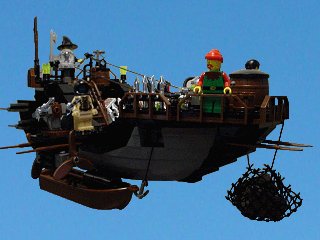 We had a brief encounter with some kind of flying beast today. It wasn't anything I'd seen before, but then these are unfamiliar waters. It was like a giant bag floating above the clouds with tentacles hanging down. It tried to grab us, but a couple of harpoons through its body chased it off. I suspect the harpoons didn't do much damage, but we clearly startled it. It was a fascinating creature- I'll have to make some drawings when I get the chance.