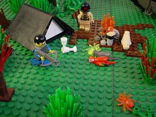 Another uneventful day comes to a close. I've taken up the joyous new hobby of shooting the crazy-colored spiders around here. Although I'm not interested in tasting one, they are at least something different to shoot at besides the birds and other small game. And it's good crossbow practice.