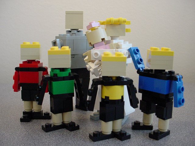 Here we are, all together. This group pose is the basis I used for positioning the figs in the renderings of the family.