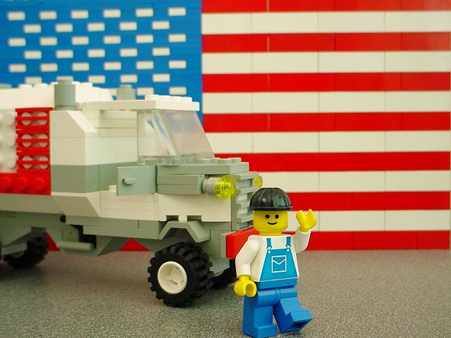 The flag makes a really neat backdrop for small models, as seen here with my old-time milk truck. I'm thinking I'll build a flag into the wall of a building- that would make a great bit of Americana to add to a train show display.