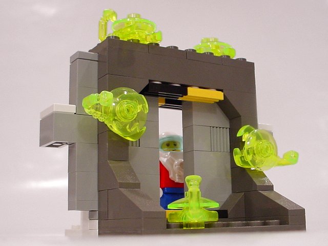 The small section of wall represents the hull of a larger space ship.