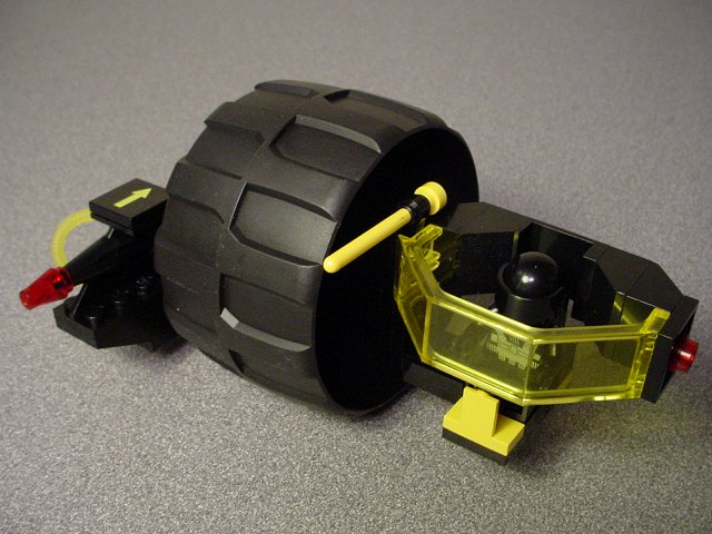 The layout has the oversized wheel in the middle, the pilot's pod on the left, and the power plant / laser cannon unit on the right.