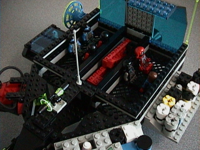 With all the upper doors open, you can see how the crane tucks into its storage area and the androids sit nearby on the partially-enclosed cargo area.