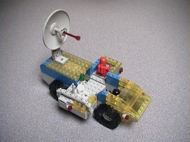 | Here's a basic shot of the Rover. The sample collection cab is on the right side of the vehicle. When it is stowed, the cab is prevented from rotating and the operator can easily step out onto the walkway that leads across to the analysis station. | |
