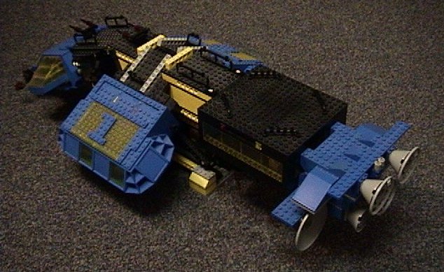 | There are two Engine modules. The Primary Engine Module has three fusion thrusters, providing sublight propulsion. The Secondary Engine Module sits below that, mounting redundant spacefold generator dishes and a pair of Höerken thrusters. | |