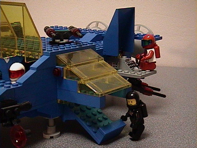 A Futuron colonist makes some minor adjustments to the scanning equipment as a Space Corps officer approaches the loading ramp.