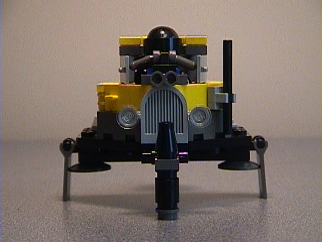 | The new front end features a larger radiator and new headlights. And the landing gear and lift systems have been totally swapped out. The old jalopy featured 4 small feet and 3 pair of thrusters. The new lift system consists of a pair of degrav dishes in the rear and a thruster in the front. The thruster also rotates back in flight to serve as secondary propulsion. The rear has a pair of winglets that flip down to double as landing gear. | |