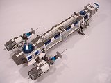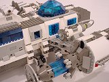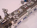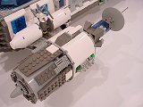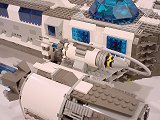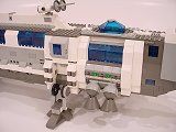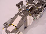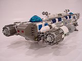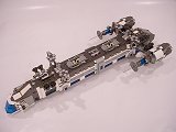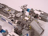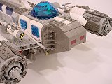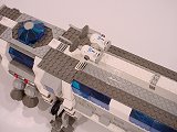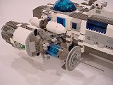 Back To Melpomene index Exterior | Interior | Support Vehicles | Crew & Backstory | Construction Melpomene is 125 studs long, and 52 studs wide at the engines. The main hull ranges from 12 to 16 studs wide. It stands a total of about 25 studs high from the ground to the top comm arrays, with the main part of the hull about 15 studs tall.