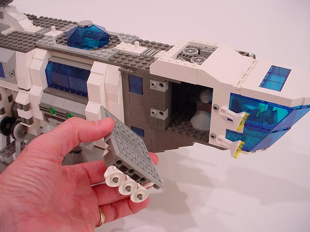 Removing the panel here gives a view of the rear part of the cabin. That round device inside is the mount for the pilot's chair. Like the top door, this access isn't for minifigs- only for my fingers.
