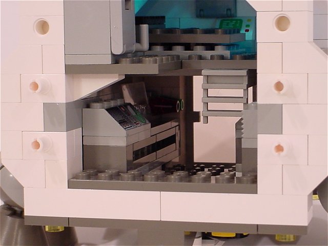 This is looking forward through the "neck", showing the environmental controls on the lower deck. At the far end here is the door to the command cabin.