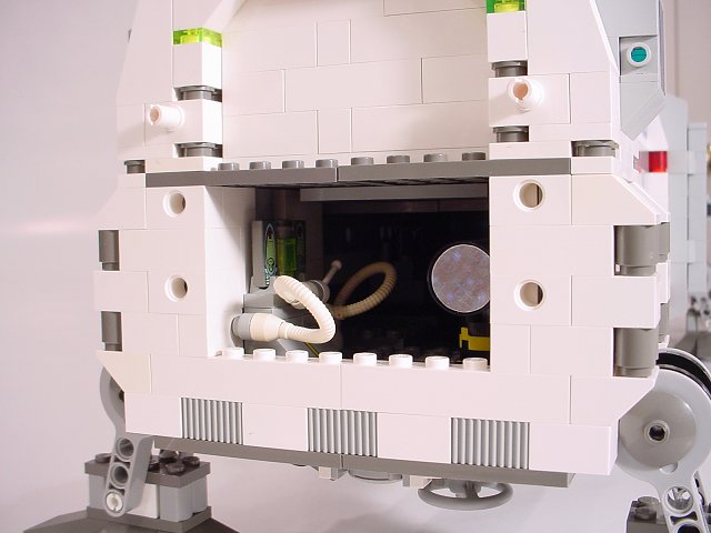 This is the view from the environmental station on the lower level past the water-processing unit, towards the crew berths on the lower deck of the center section. On the other side of the wall above are the shower and powder rooms.