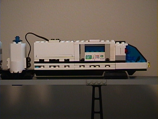 | This end of the monorail is identical to the other end, except that one of the cargo pallets has a base for the battery box. Unlike the stock monorail, this one is not removable like the other cargo modules. You'd have to unhook the wire anyway, so I didn't see the point. | |