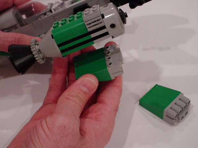 The centers of the engines are mostly normal studs-up construction. This shows how the bottom section is built and attached.