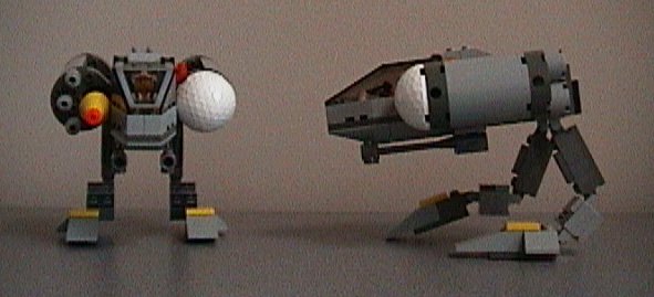 | This shot shows 2 Standard Battle Striders. The left arm pods are equipped with the Seldar A-24 multirange sensor package. The right arm pods are equipped with the tried-and-true TerraFab Model G Beam Cannon and 3 UniMil Mark I Micromissile launchers. Each Strider also sports a pair of Seldar 30mm Autocannons mounted beneath the body. | |