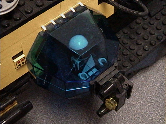 Closeup of the port turret. The highly-advanced targeting system turns these fairly small dual lasers into an effective defense against enemy fighters.