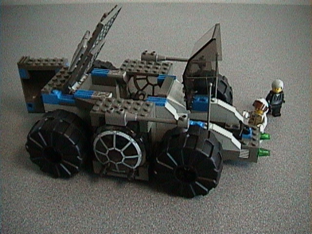 | Passenger access is provided by a swinging door in back and a cockpit hatch in front. Additionally, there is a large top hatch for adding or removing equipment (and, of course, to allow me to position figs inside). Seldar's Chief Executive Officer, Pylorem K'calb, inspects the outside of the vehicle while the driver tries to narrow down a problem with the vent actuator for one of the redundant equipment cooling systems. | |