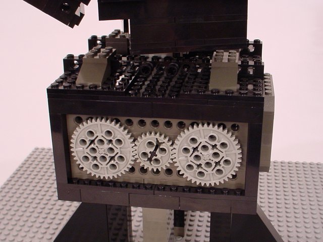 The gears on the side of the building turn as the turret rotates. They're totally gratuitous, but it does look cool.