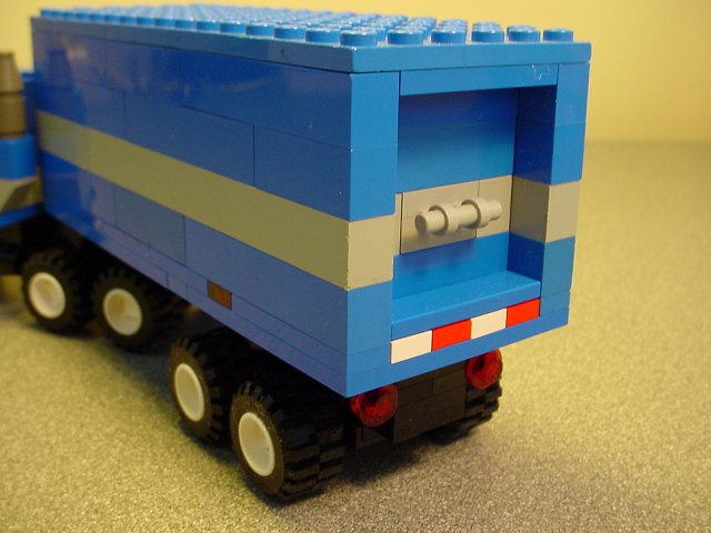 I like to put safety stripes on the rear ends of many of my trailers. Note also the side lights and the cheesy fake rear door.