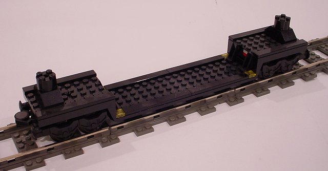 | The round 2x2 brick fits into a hole in the bottom of the trailer. This matches the design I use on my tractor-trailer rigs. The front end of the trailer's undercarriage locks into the 2-stud-wide gap between the support struts at each end of the lower area, preventing the trailer from tipping or rotating off the side of the car in normal use. | |